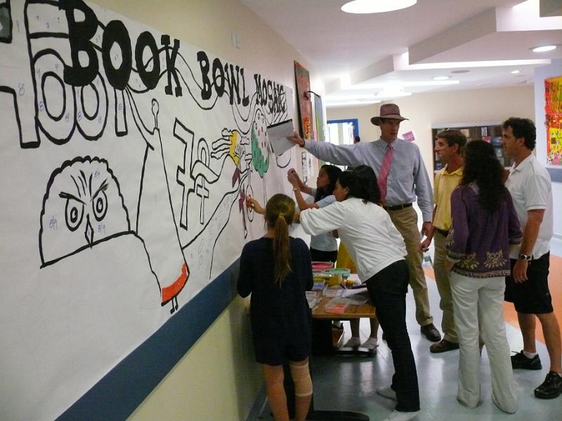 Book Bowl is another major library program. Here, students made a mosaic from thousands of squares of colored paper